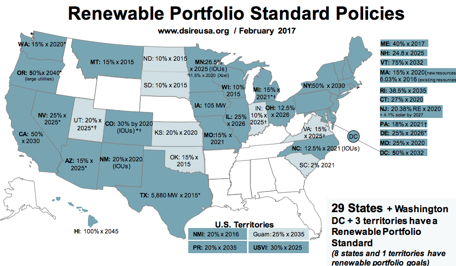 You can see the list and mandated amount of renewables for each state here: